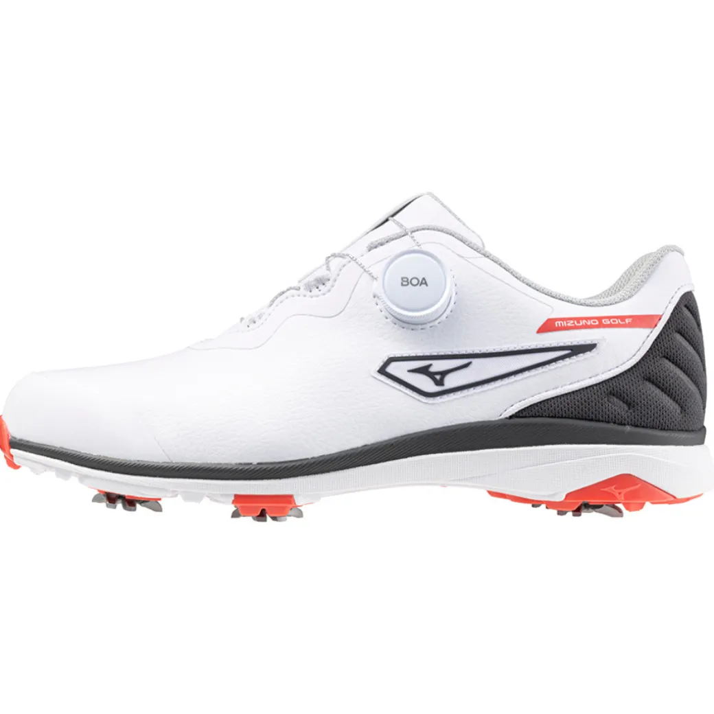 Embark on a golfing odyssey with Mizuno’s Nexlite Ultrawide BOA, meticulously designed for the greens. Experience the fusion of a wide and lightweight design complemented by a soft upper material. This spiked golf footwear redefines the pursuit of featherlight agility on the course. At the same time, the integration of BOA Lacing technology ensures a precision fit for your golfing journey.