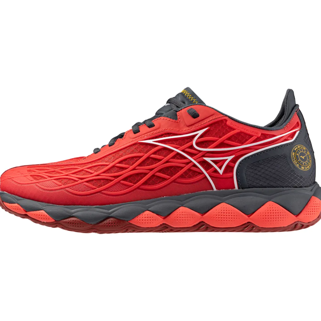 This shoe is specially designed to enhance stroke motions to keep you powerful until the very end of the match. It is equipped with MIZUNO ENERZY CORE for energy return and cushioning against strong impact against the court, which supports translational movement. The flat sole and outrigger support strong rotational movement. The new Dyna-Heel Lock structure also improves the fit and stability of the ankle and heel.